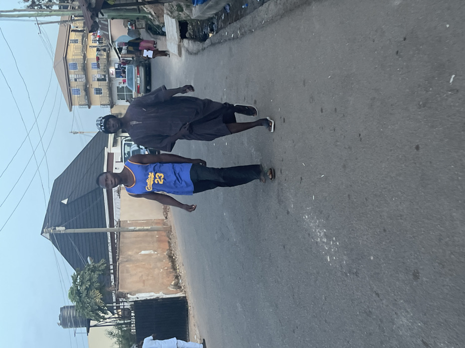 This image captures an urban street scene in Jos, Nigeria, under ambient daylight conditions suggesting late afternoon or early morning
