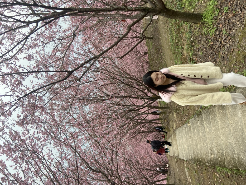 - "A woman stands sideways on a concrete path lined with blooming cherry blossom trees, their pink flowers creating a tunnel effect" by FM-QyxGR2, licensed under CC BY 4.0
