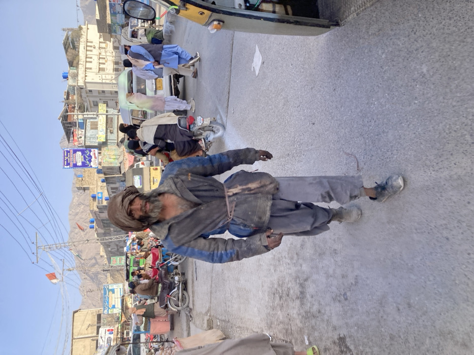 The image depicts a daytime street scene within Quetta City Tehsil, Pakistan