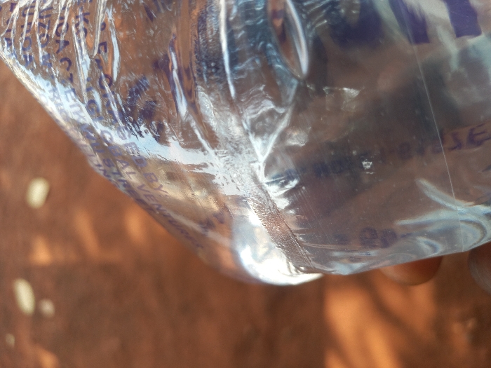 - "A close-up, high-angle view depicts a human hand holding a transparent plastic sachet, likely containing water, against an out-of-focus reddish-brown ground surface" by FM-dSFJt1, licensed under CC BY 4.0