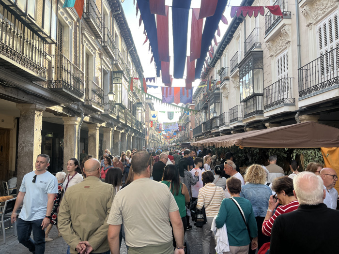 - "The image displays a bustling outdoor scene on Calle Mayor in Alcalá de Henares, Spain, during what appears to be a festival or market" by FM-3PsJ13, licensed under CC BY 4.0