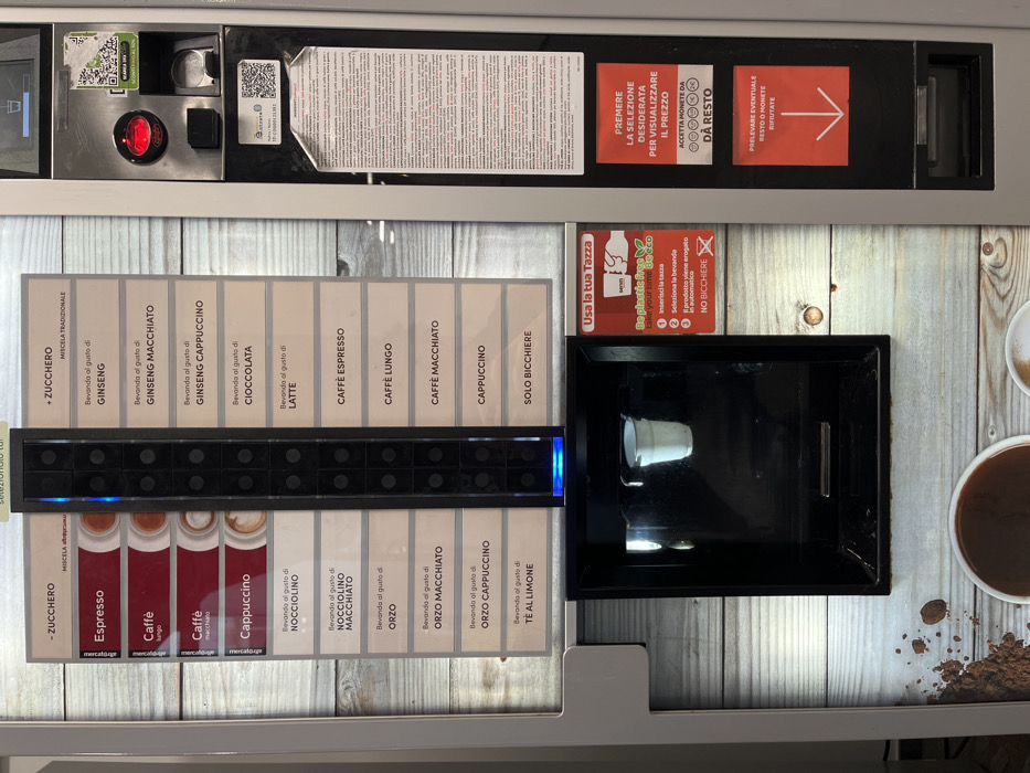 - "This image depicts a brightly lit, modern beverage vending machine, likely situated indoors in Milan, Italy" by FM-6TgxA3, licensed under CC BY 4.0