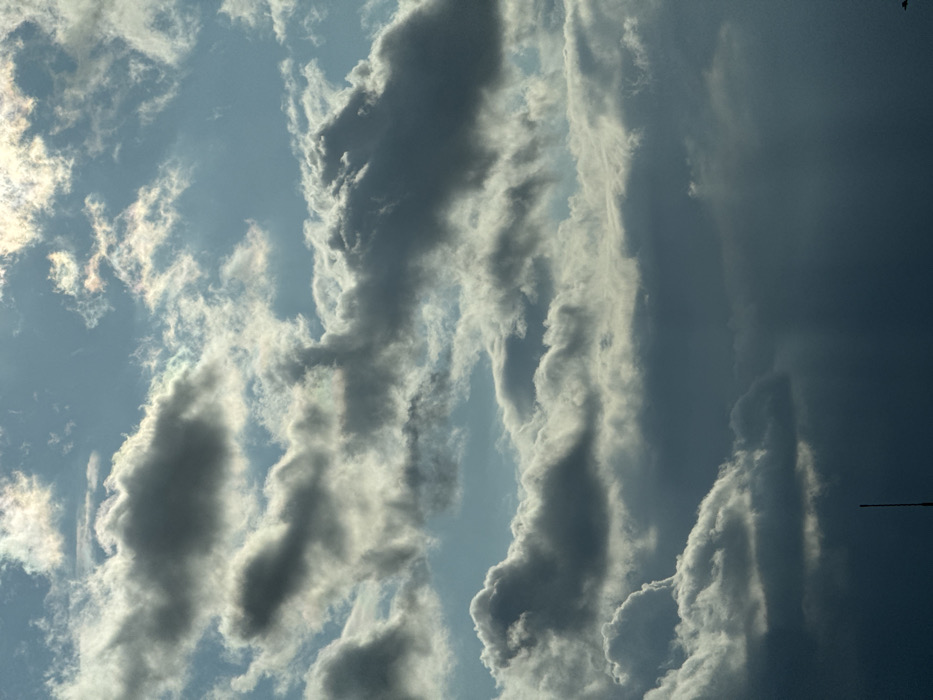 A sky scene is filled with textured clouds