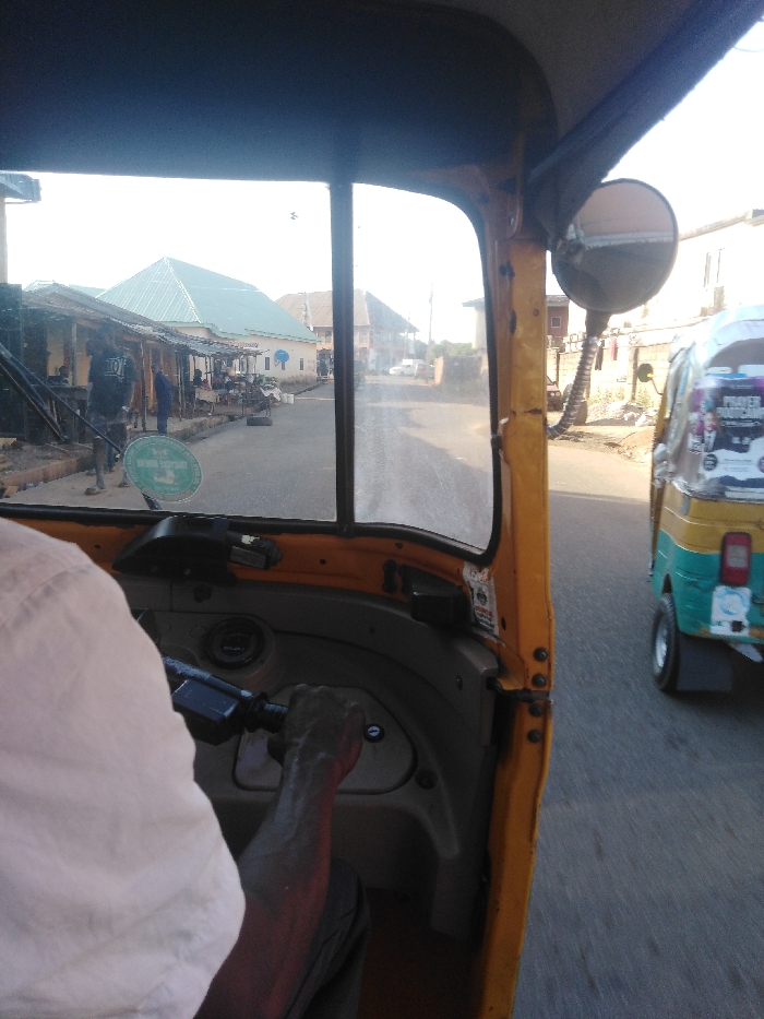 - "The image presents an urban street in Jos, Nigeria, viewed from the interior of a yellow and black tricycle (Keke Napep)" by FM-ClHOY2, licensed under CC BY 4.0