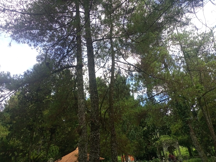 - "The image captures an outdoor scene in Cipanas, Indonesia, dominated by tall, slender conifer trees, likely pines, viewed from a low angle looking upwards through their dense canopies" by FM-5nxkH3, licensed under CC BY 4.0