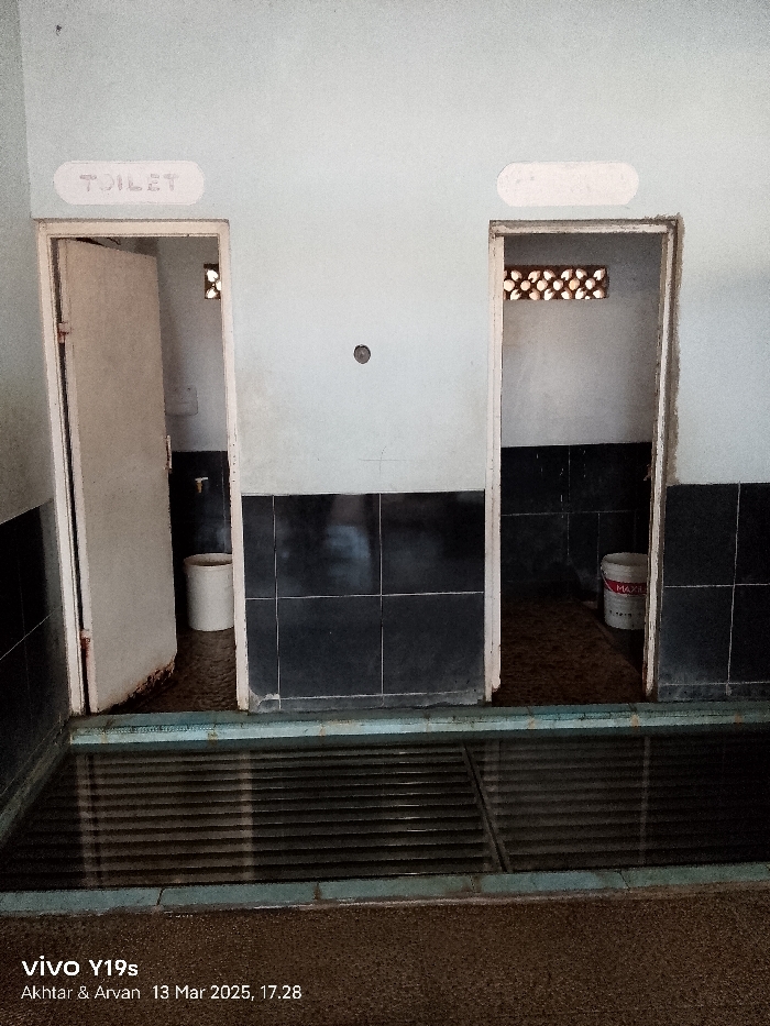 interior of a public restroom in Kecamatan Gabuswetan, Indonesia, located at latitude -6