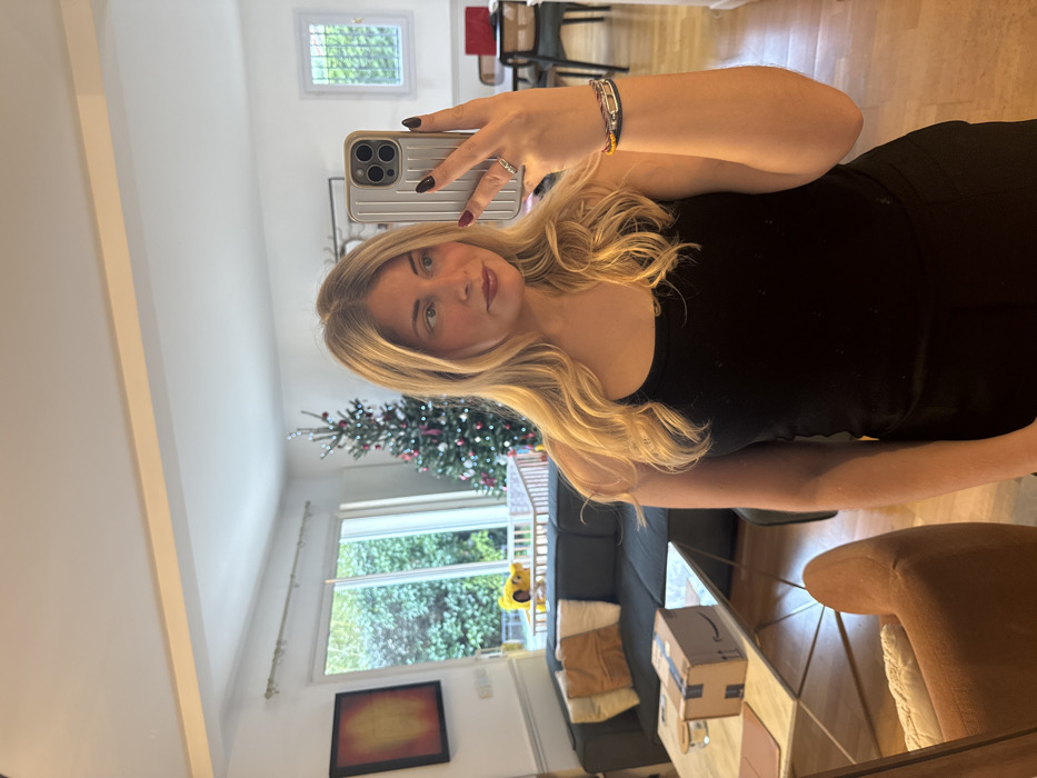 - "This image, captured in Rueil-Malmaison, France, depicts a mirror selfie of a woman with long, wavy blonde hair, wearing a black tank top" by FM-OZmdD3, licensed under CC BY 4.0