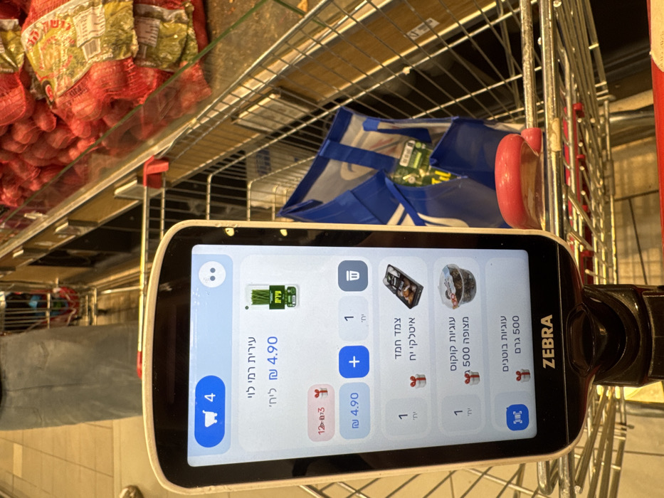 - "An eye-level indoor photograph depicts a white and black "Zebra" brand self-checkout scanner device mounted on a metal shopping cart inside a Rami Levy supermarket in the city of Ariel, Palestinian Territory" by FM-v1KIi2, licensed under CC BY 4.0