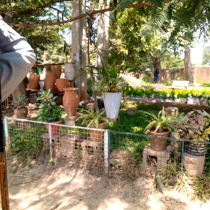 The image displays an outdoor plant nursery or garden center in Kaduna, Nigeria