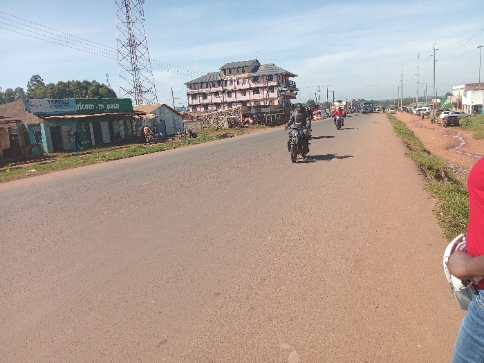This image captures a street scene in Shirungu-Mugai ward, Kenya, on a clear day