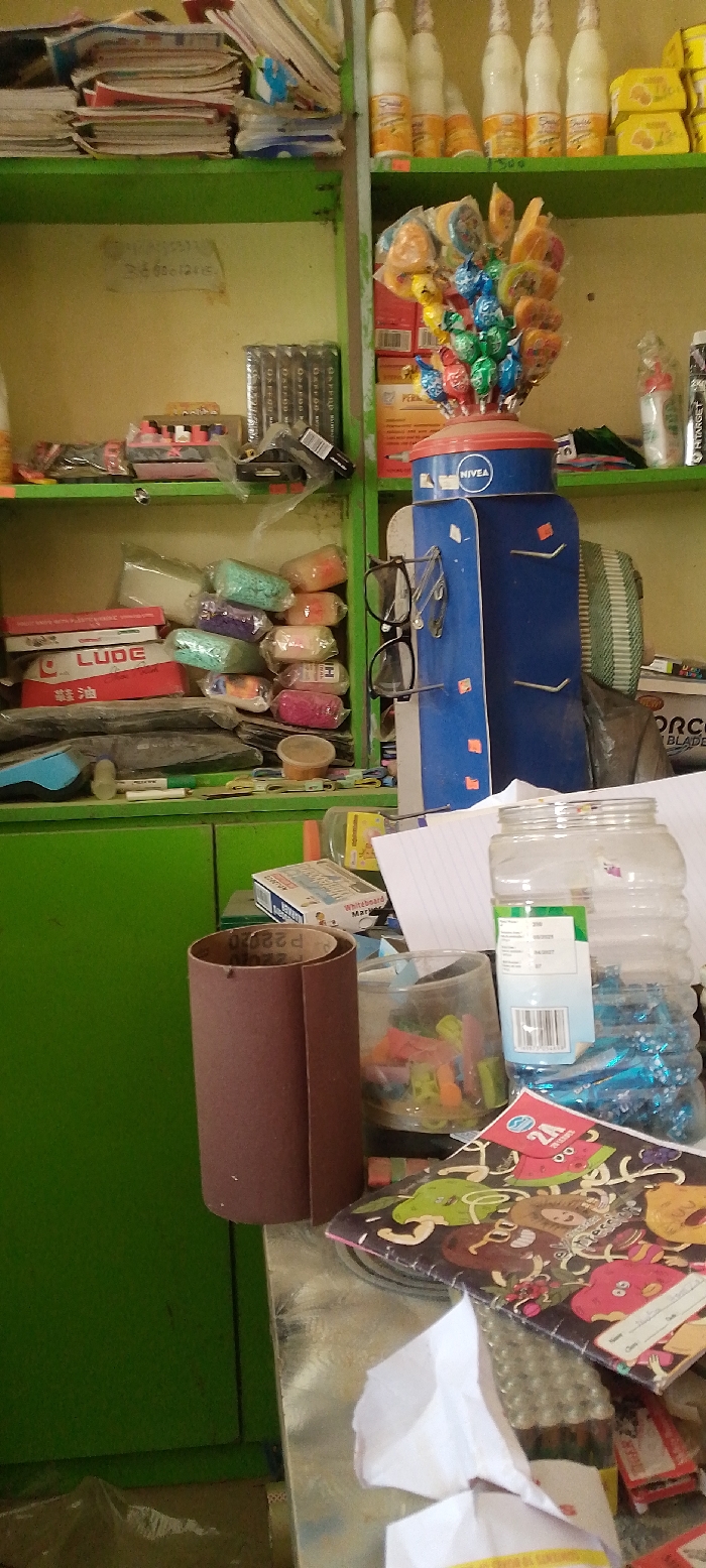 The image displays an interior view of a general merchandise store in Danbare, Nigeria