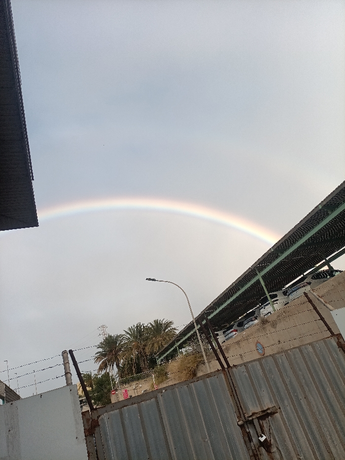 - "The image depicts an outdoor urban landscape in Ingenio, Spain, under an overcast sky featuring a prominent rainbow" by FM-63vGE2, licensed under CC BY 4.0