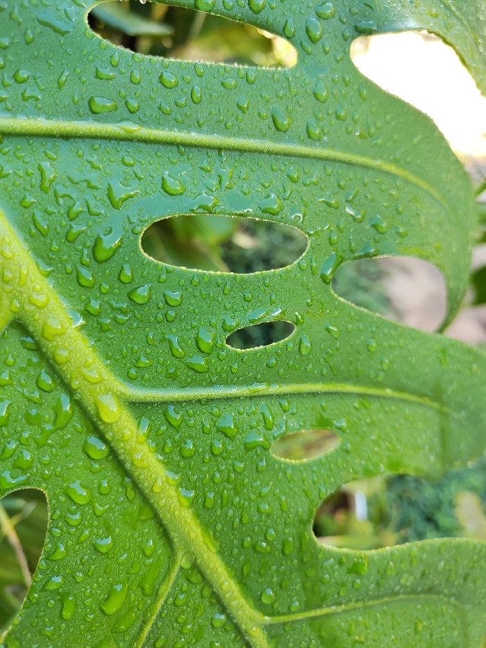 - "The image presents a detailed, close-up perspective of a vibrant green Monstera leaf, located in the city of Lán Tranh, Vietnam" by FM-WroXJ3, licensed under CC BY 4.0