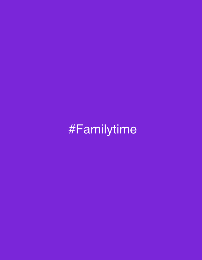 A solid purple background fills the image. Centered vertically and horizontally, "#Familytime" is written in a clean, sans-serif font. The text is white, providing high contrast against the purple backdrop. The hashtag symbol precedes the word "Familytime", creating a single, connected word. The overall effect is simple, direct, and reminiscent of a social media post or message.