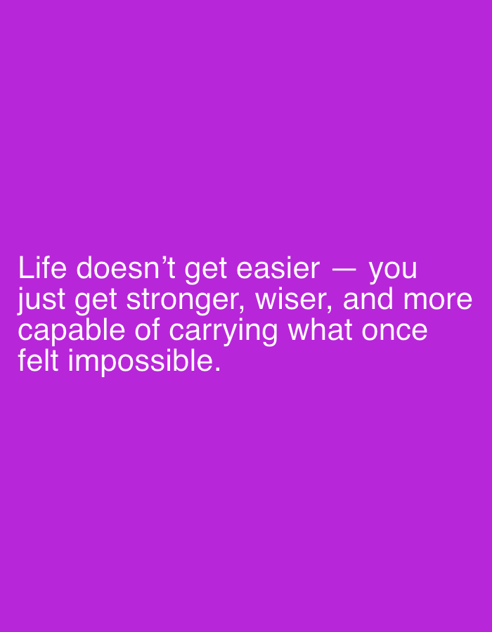 The image displays the text "Life doesn't get easier – you just get stronger, wiser, and more capable of carrying what once felt impossible