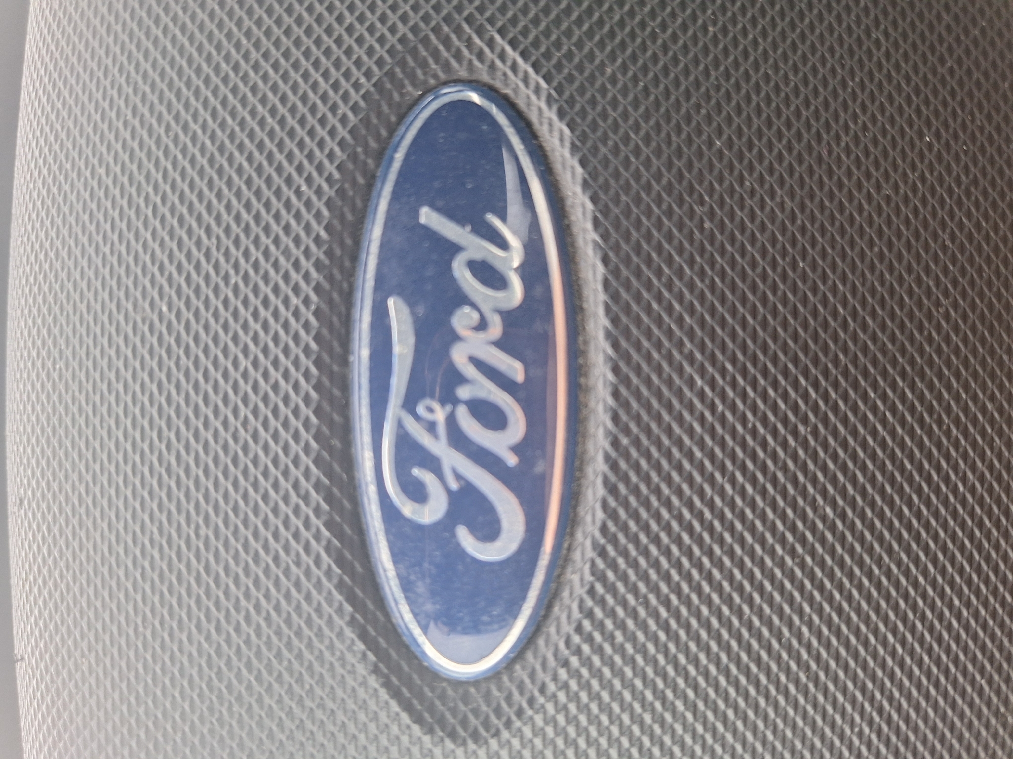 close-up view of a Ford logo on a surface with a textured, crisscross pattern