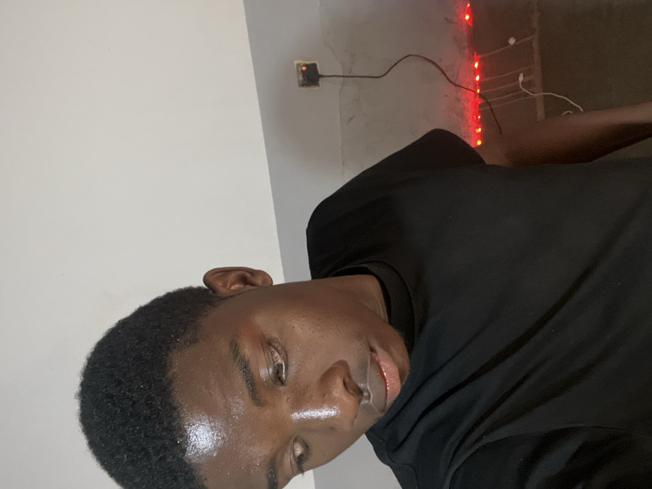 The image depicts a young Black male in Bar Gada, Nigeria, captured indoors