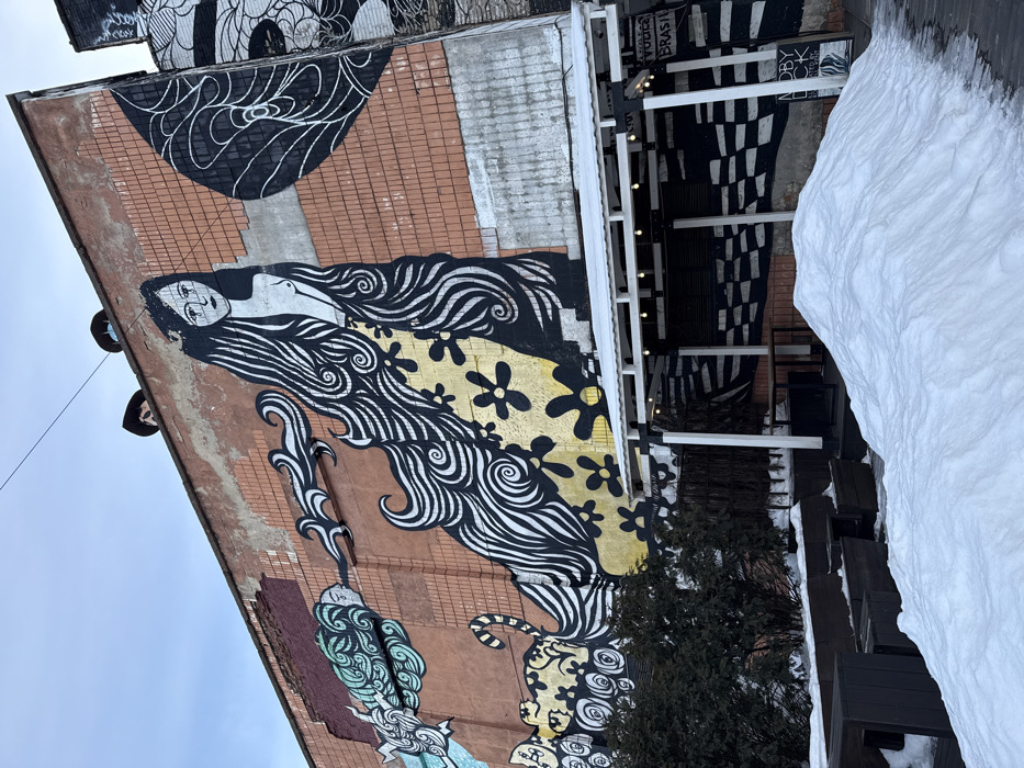 - "The image depicts a detailed street art mural on the brick facade of a building located on Kastryčnickaja vulica (Oktyabrskaya Street) in Minsk, Belarus, during a winter season" by FM-LoC4w2, licensed under CC BY 4.0