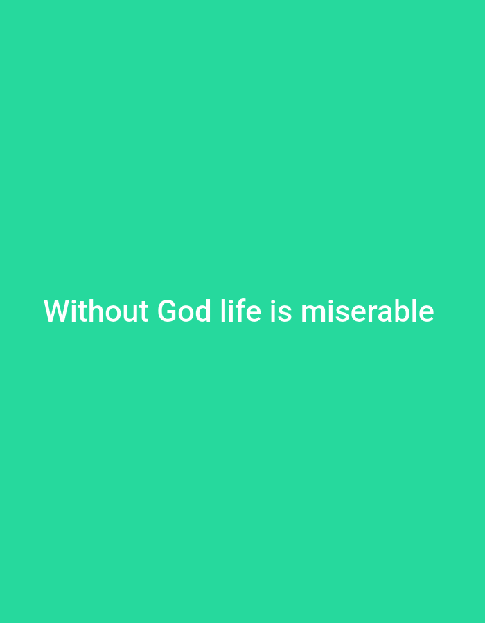 The image is a solid, bright turquoise background with the phrase "Without God life is miserable" written in white in the center