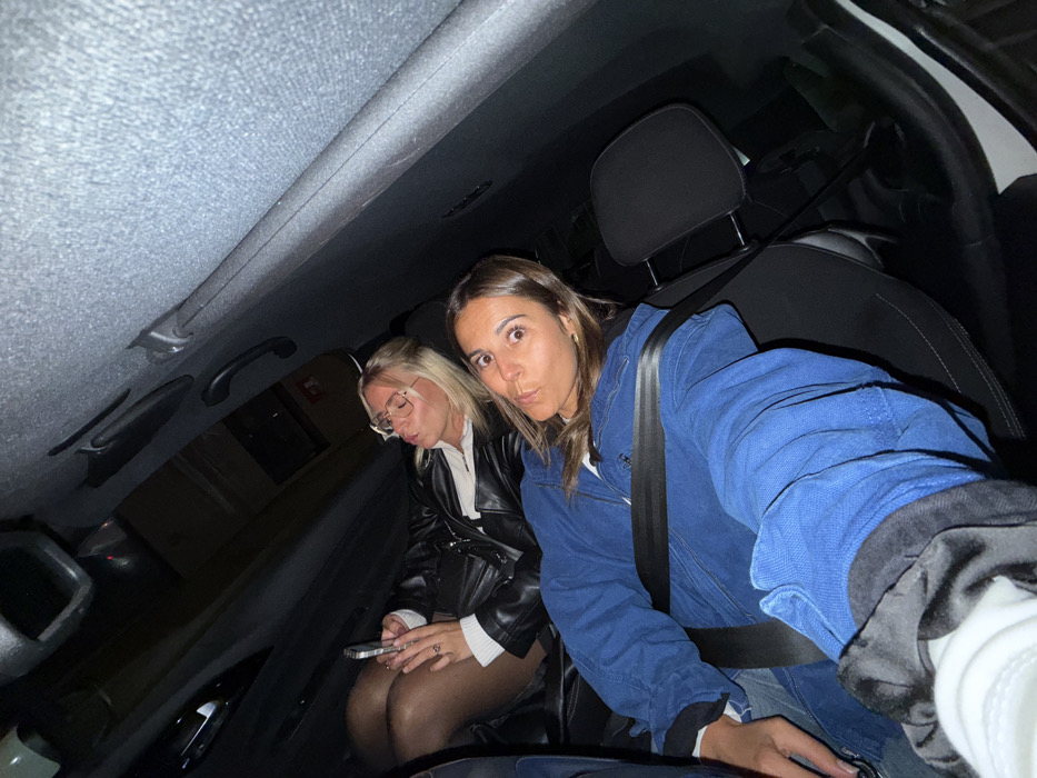 Two women are in a car
