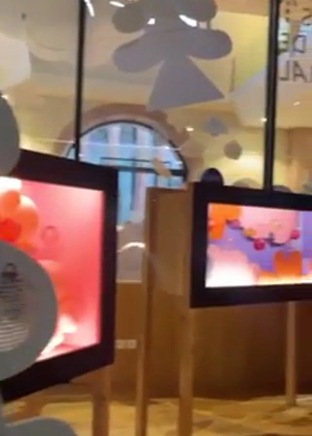 The video showcases an interactive science exhibit in a brightly lit, contemporary space