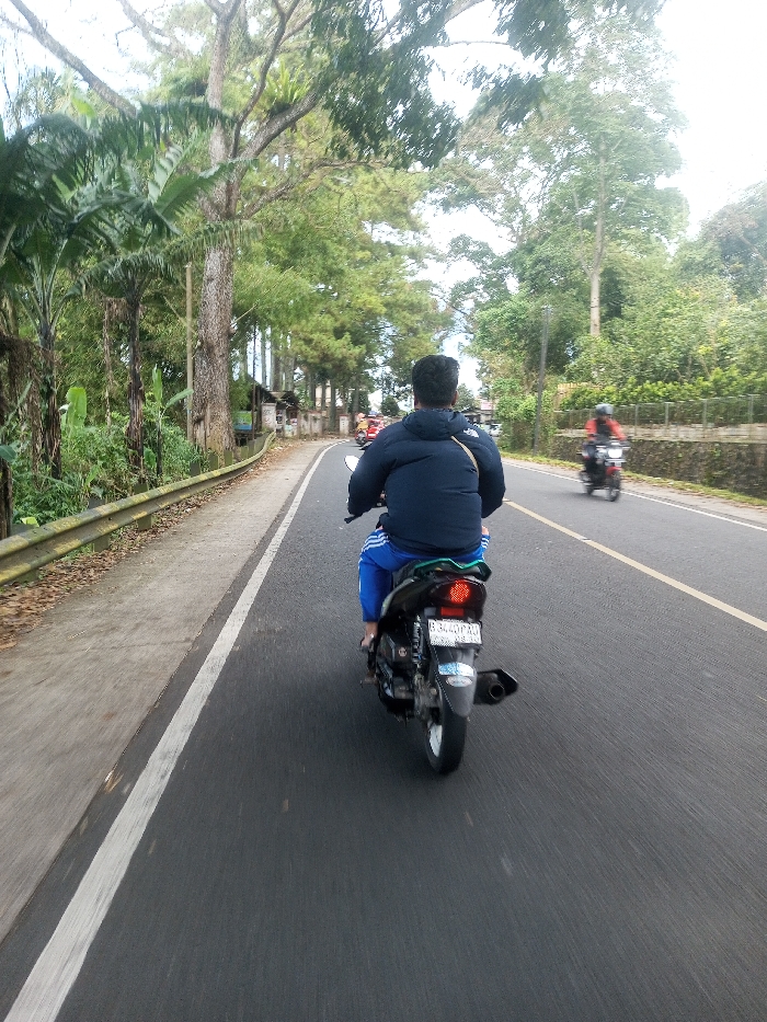 - "This image captures a man riding a black scooter-style motorcycle on a paved road in Sat Thay (East), Myanmar, viewed from a slightly elevated perspective directly behind him" by FM-tIznO2, licensed under CC BY 4.0