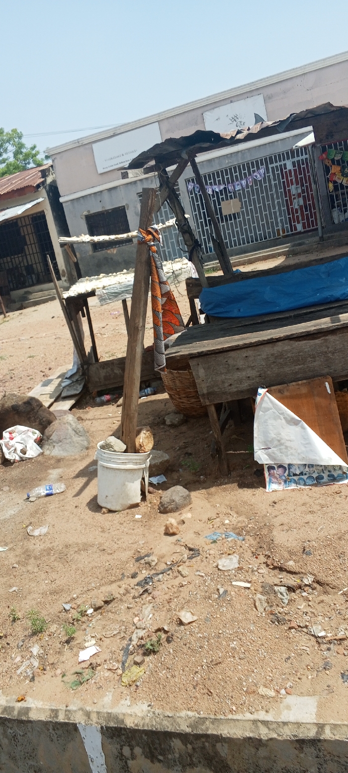The image depicts a sunlit outdoor scene in Adankolo, Lokoja, Kogi State, Nigeria, specifically at 14 Salihu Jibrin Road