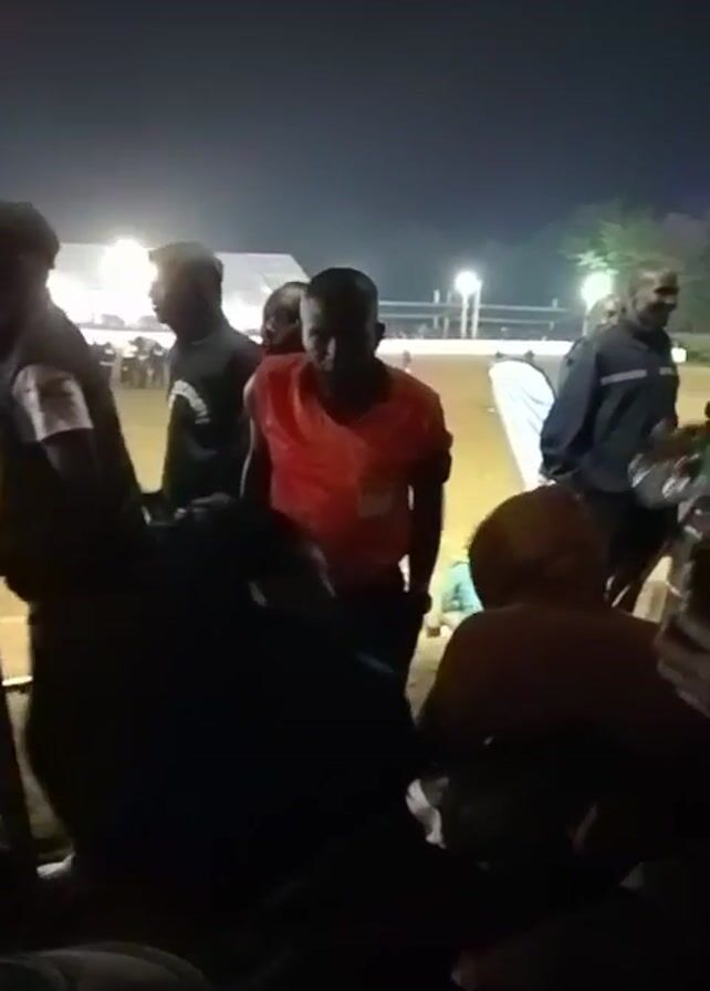 The video, likely recorded at night, features a gathering of people in an outdoor setting that appears to be a field, possibly a sports arena or a park with a sports field