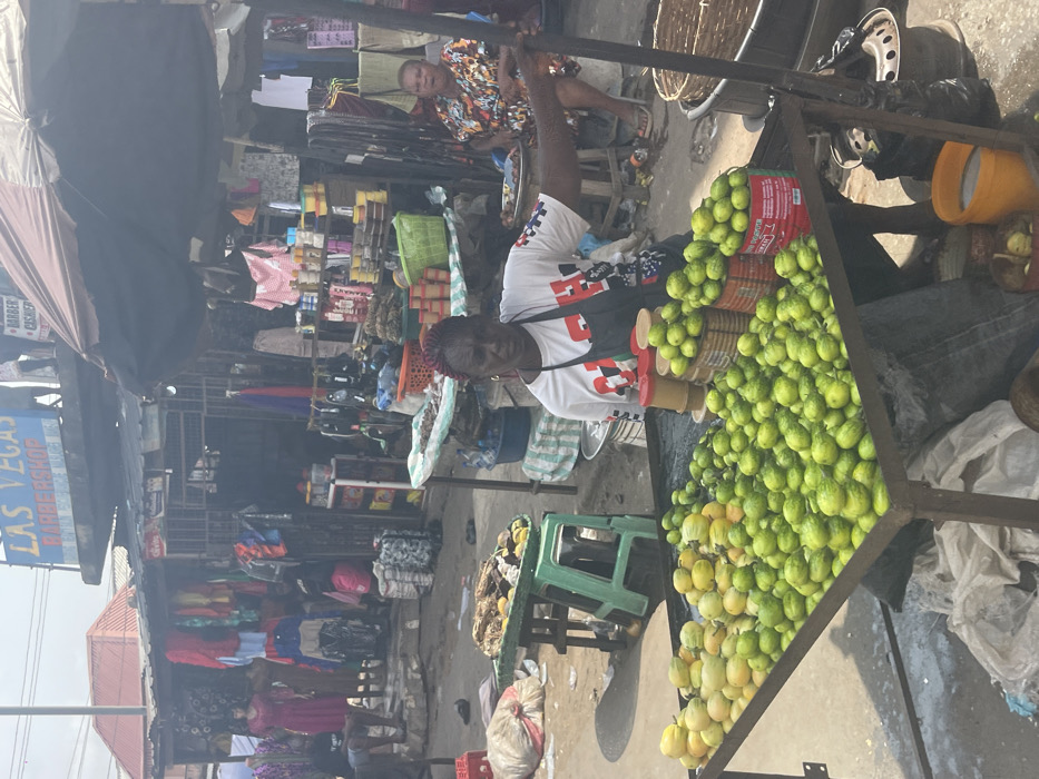 - "This image depicts a bustling outdoor street market in Asaba, Nigeria, identifiable by a prominent "LAS VEGAS BARBERSHOP" sign mounted on an elevated blue structure in the background" by FM-CFMKJ2, licensed under CC BY 4.0