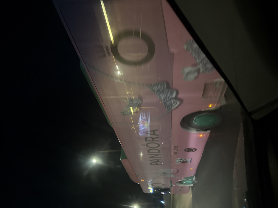- "The image depicts a pink public transit bus traveling at night on an urban road in Sofia, Bulgaria" by FM-j1Izo1, licensed under CC BY 4.0