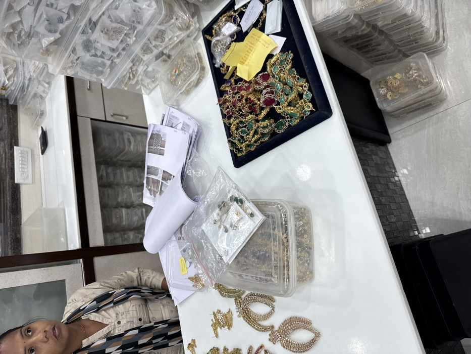 An indoor scene depicts a jewelry retail or wholesale environment in Kolkata, India