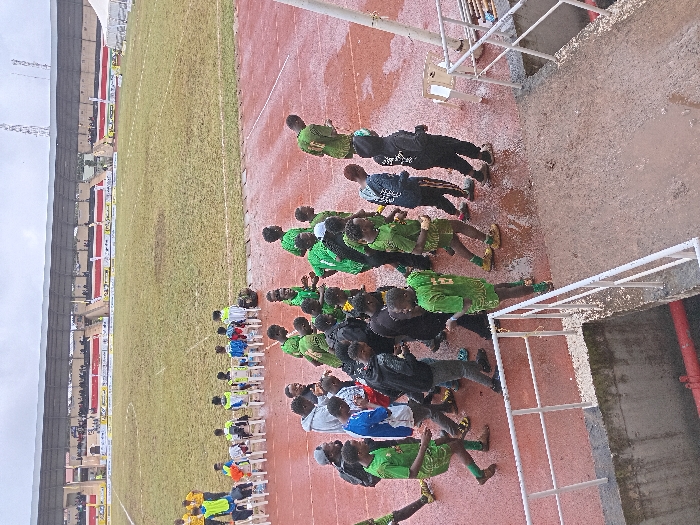This image depicts Kinoru Stadium in Meru, Kenya, under overcast conditions