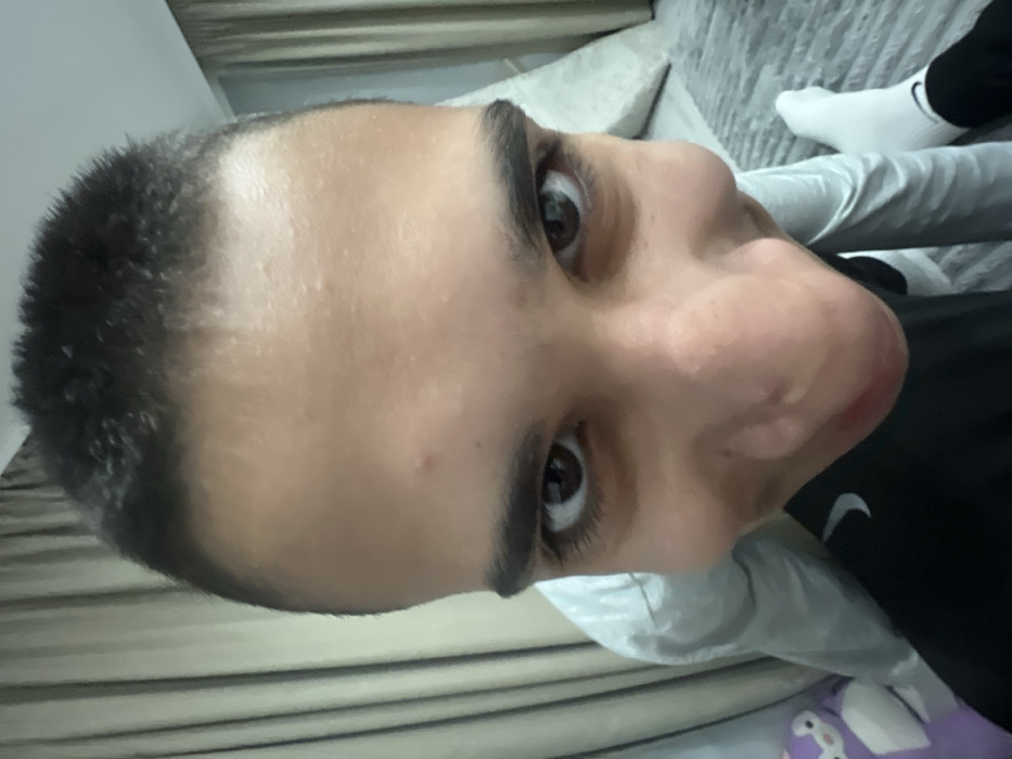 - "A wide-angle, close-up indoor photograph depicts a young, light-skinned individual, identified as male, with short dark hair, dark eyes, and dark eyebrows, looking directly into the camera with a subtle smile" by FM-soC9r1, licensed under CC BY 4.0