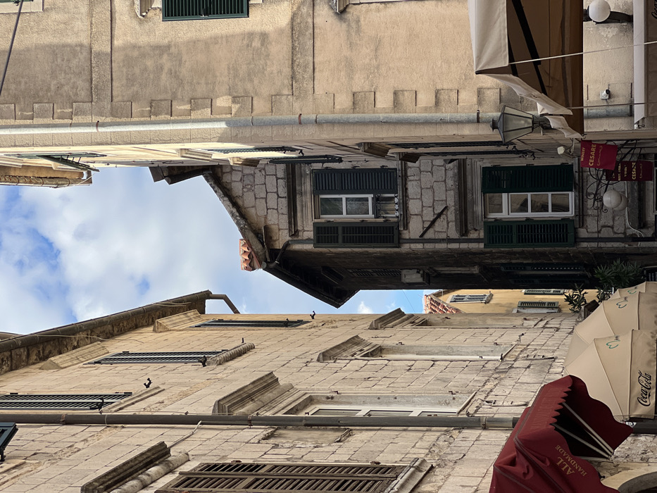 - "The image depicts a narrow urban street in Kotor, Montenegro, characterized by closely spaced multi-story stone buildings under a partially cloudy blue sky" by FM-PcEqo1, licensed under CC BY 4.0