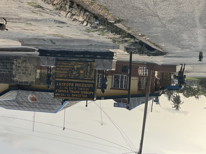 The image displays a sign that reads "Welcome to the Mobee Royal Family Original Slave Relics Museum Badagry