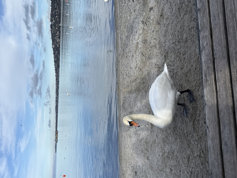 - "A white mute swan (Cygnus olor) stands on a sandy-pebbly shoreline of Lake Geneva, located in Geneva, Switzerland" by FM-z8OuP2, licensed under CC BY 4.0