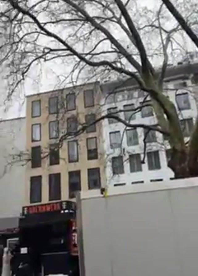 The video begins with a close-up of a leafless tree and a white trailer in an urban setting