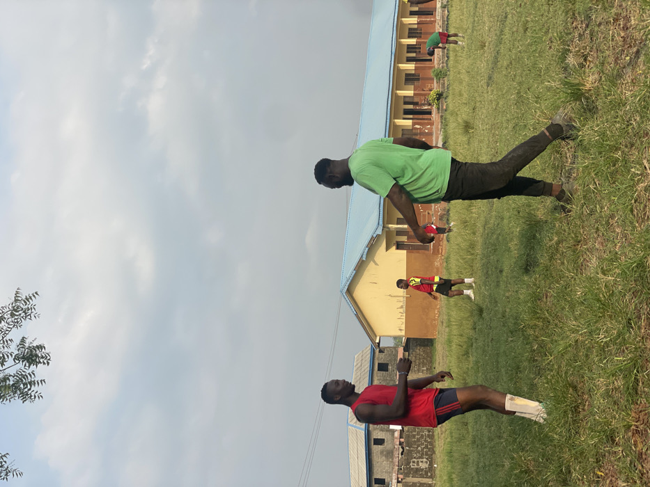 - "Two men are exercising on a grassy field in front of two school buildings under a cloudy sky" by FM-pK89w1, licensed under CC BY 4.0