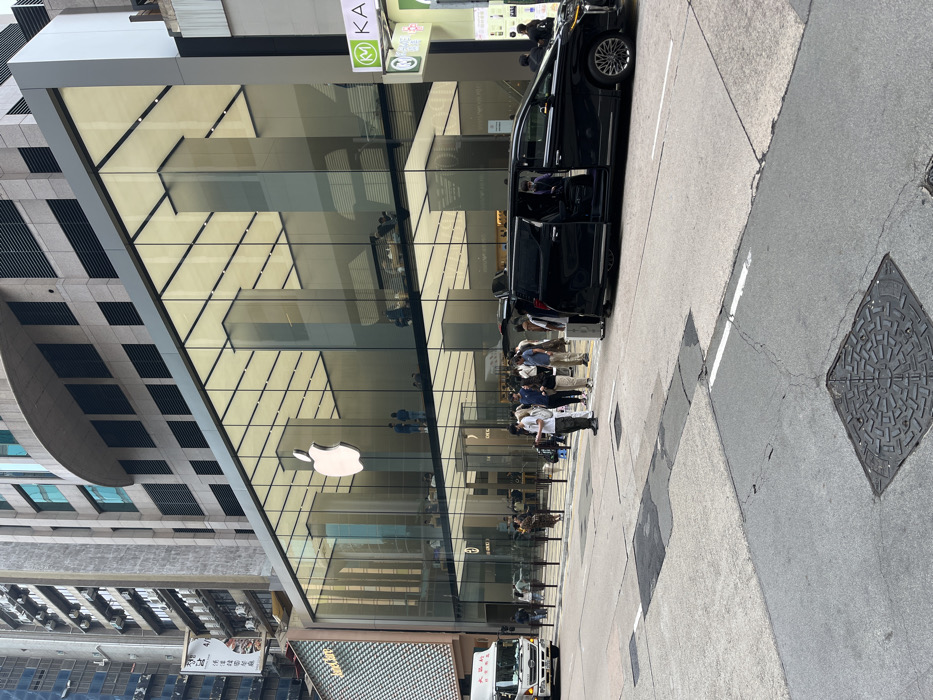 - "The image captures a street-level view of a multi-story Apple Store located in Kowloon, China, characterized by its extensive glass facade and a prominent, internally illuminated white Apple logo centered on its upper section" by FM-Amqid2, licensed under CC BY 4.0