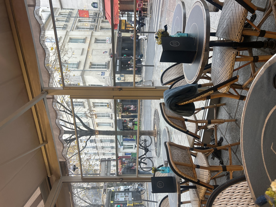 - "The image presents a street scene in Paris, France, viewed from inside a cafe located at the intersection of Rue de Turbigo and Rue Montmartre" by FM-739zy2, licensed under CC BY 4.0