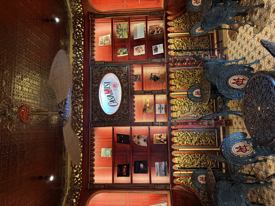 - "The interior features a cabinet display showcasing books and decorative items under warm lighting, framed by ornate wood detailing" by FM-cn9xD3, licensed under CC BY 4.0