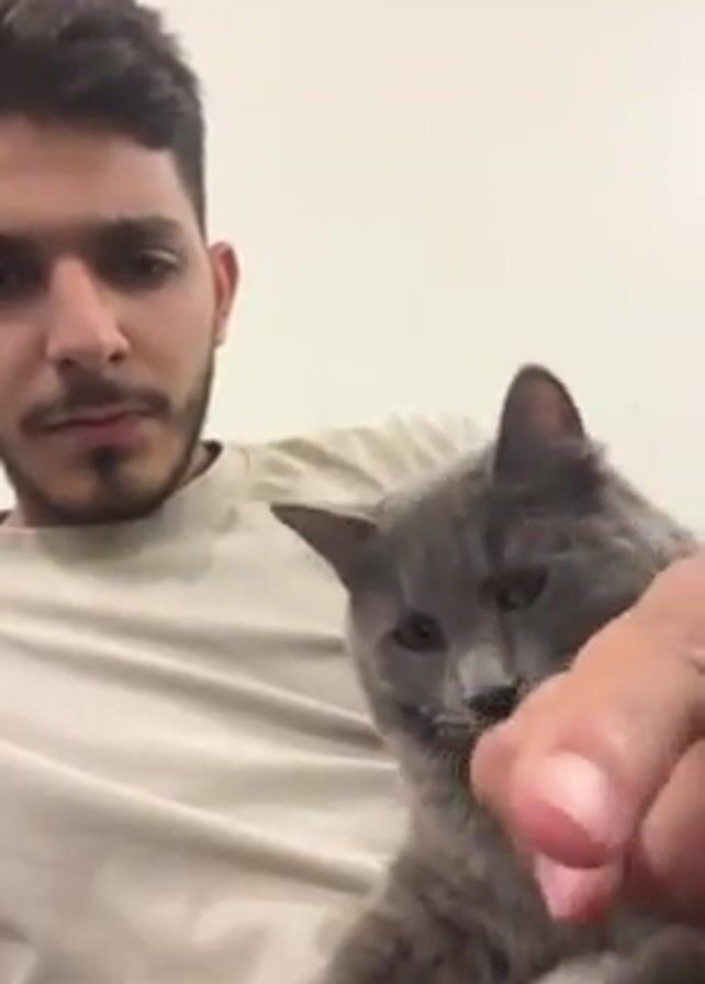 - "A young man with dark hair and a beard is holding a gray cat in his arms" by FM-WnN6r1, licensed under CC BY 4.0