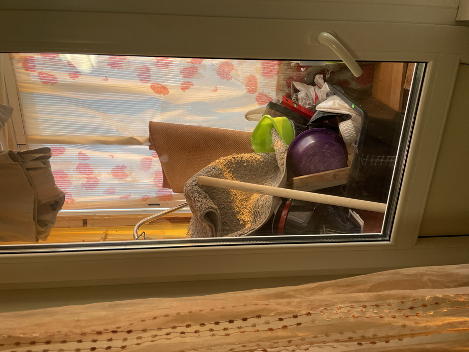 - "A cluttered window reveals a storage space filled with various household items" by FM-aSc183, licensed under CC BY 4.0