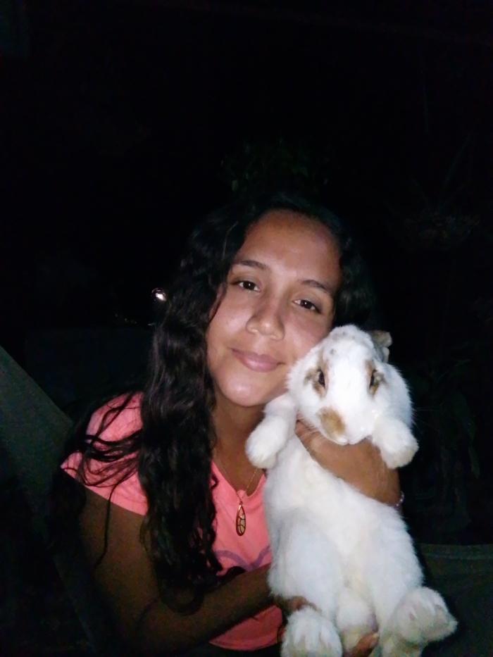 - "A female subject is depicted holding a rabbit in a dark environment, identified as Juan Griego, Venezuela" by FM-5rRTy1, licensed under CC BY 4.0