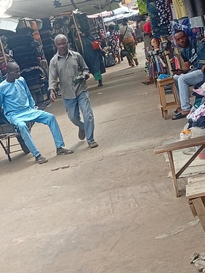This image captures an outdoor market scene within the city of Maiburiji, Nigeria