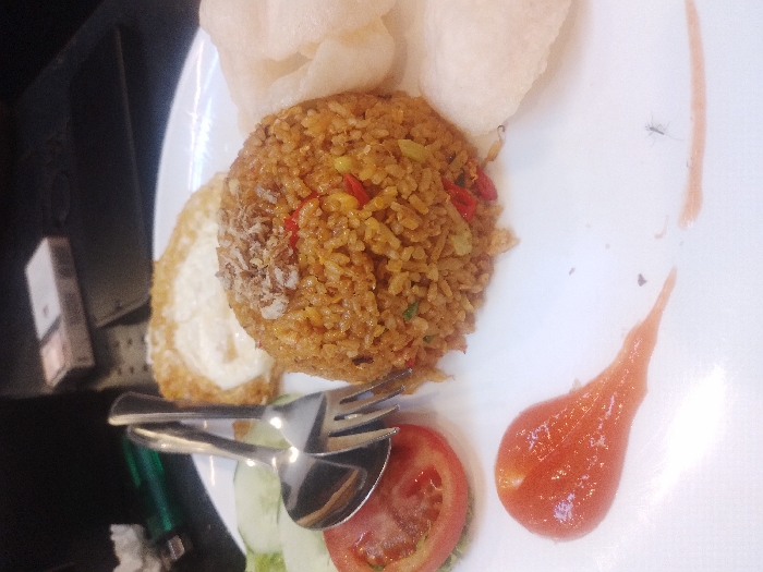 - "A plate of Nasi Goreng, or fried rice, is presented with prawn crackers on top" by FM-D7zUe2, licensed under CC BY 4.0
