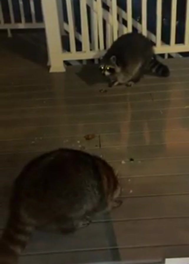 - "Two raccoons are eating on a deck outside a window" by FM-ownra2, licensed under CC BY 4.0