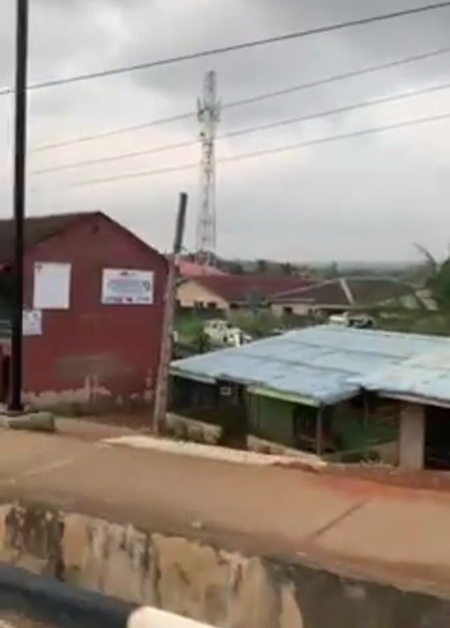 The video, captured from a moving vehicle, shows a somewhat dilapidated street scene, possibly in a developing area