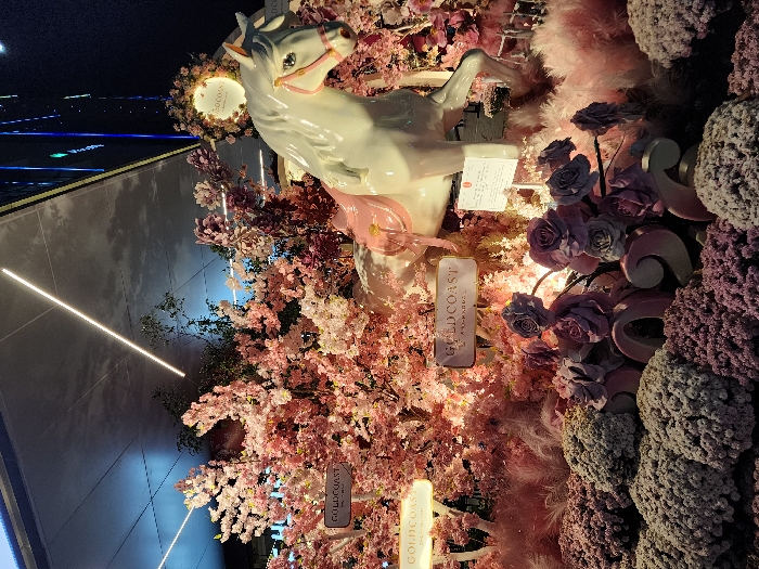 This image displays a decorative floral arrangement situated within the Goldcoast shopping center in Nha Trang, Vietnam