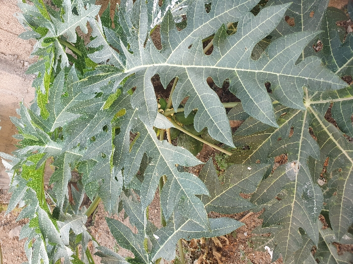 - "The image displays a close-up, eye-level view of several papaya (Carica papaya) plants growing outdoors in Jos, Nigeria" by FM-y7FMu1, licensed under CC BY 4.0
